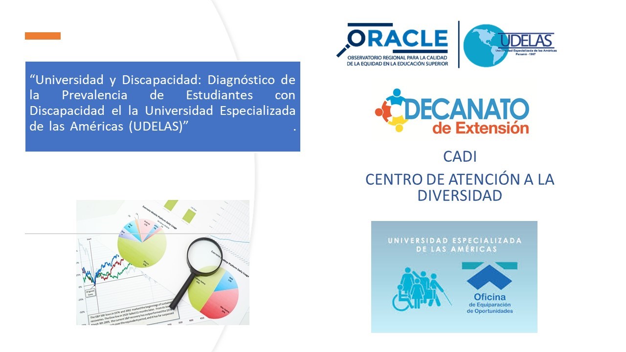 La Universidad Especializada de la Américas (UDELAS) se ha caracterizado por su fiel compromiso con los sectores mas vulnerables de nuestra sociedad, en este sentido el Observatorio Regional para la Calidad en la Equidad de la Educación Superior (ORACLE) ha coordinado esfuerzos para iniciar con el estudio sobre “La prevalencia de estudiantes con Discapacidad en Sede, extensiones y programas Académicos” ; este es un proyecto en colaboración con el Centro de Atención a la Diversidad(CADI) y la oficina de Equiparación de Oportunidades. Este estudio además de determinar la prevalencia de estudiantes con discapacidad dentro de la Universidad, busca sentar las bases para futuras investigaciones en relación a la calidad educativa; tema que ha tomado mayor relevancia en estos momentos donde la crisis mundial nos ha obligado a repensar los modelos educativos. Unido a estas acciones se adelantan otros estudios en relación a los estudiantes de la Unidad de Apoyo y los aspectos psicosociales que envuelven su realidad actual. El Observatorio ORACLE sigue en un continuo accionar en favor de los colectivos vulnerables con el objetivo de crear una Cultura de Calidad en la Equidad a nivel Institucional, reconociendo que no podemos abordar temáticas de calidad sin garantizar unos mínimos de equidad.